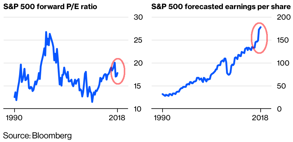 奇しくも、米株でも同じ構図の主張をする人がいる。米国企業の2019年の予想EPSは減税もあって大きく伸びているが、S&P 500は今年に入ってから伸び悩んだため、過去最高値更新中とはいえフォワードPERが低下している。米株の足元フォワードPERが16倍であり、一方10年金利が3%弱である場合のヒストリカル平均PERは19.5倍とのことなので、S&P 500は実に22%のリスクプレミアムが載っている逆バブルだというのだ。日米共に株が超絶割安と見るか、PERはその程度の眉唾指標であると見るかは各人の自由である。いずれにしても同じ論法を当てはめると米株にもリスクプレミアムが乗っているようなので、日本株のリスクプレミアムが足元で高まっているのは日銀のせいではない。
