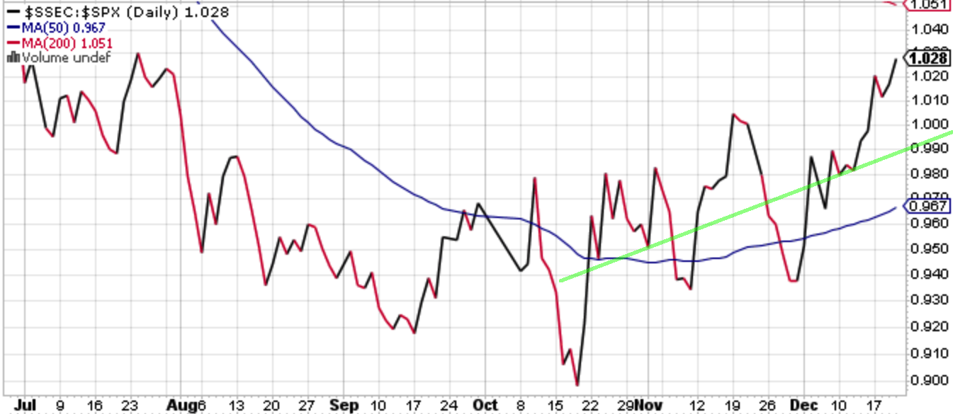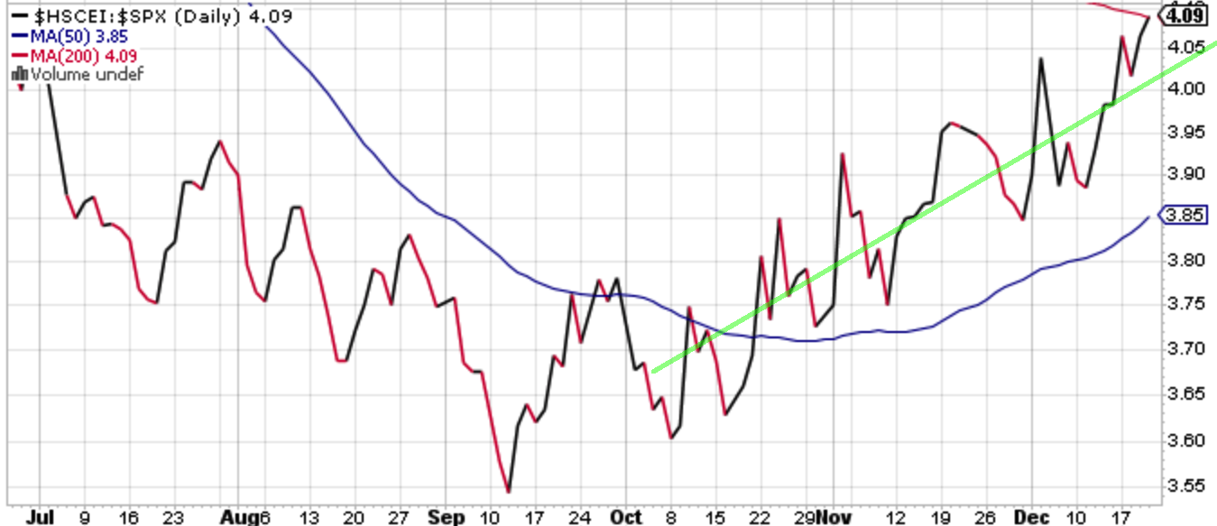 中国の財政拡張は当然グローバル株式市場にとってグッドニュースである。今は米株バブルの崩壊の方にスポットが当てられているので目立ってないが、上海株指数、及び香港上場のH株指数のS&P 500対比のアウトパフォームは静かに進んでいる。特に関税と違ってファーウェイCFO監禁事件などは米株の崩壊を加速させた割りには中国株のアンダーパフォームを招いていない。