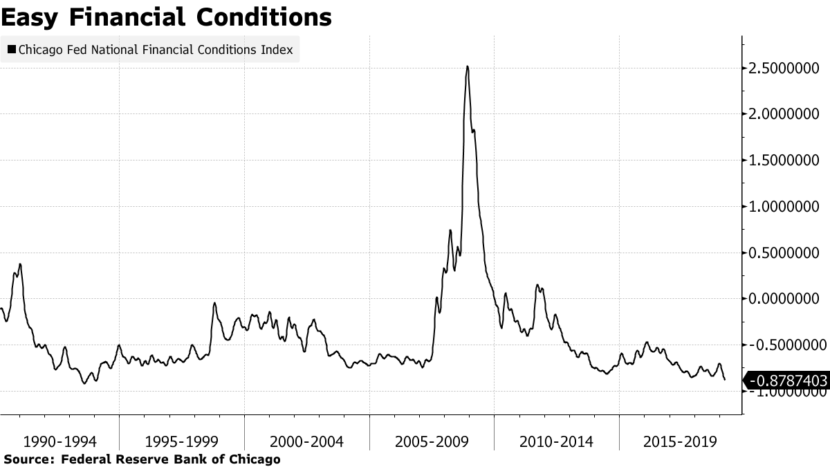 パウエル議長以下Fedメンバーは政権を恐れて共に沈黙に入っているが、ボードの外にいるウォッチャー達は早速「成長加速と緩和的な金融環境」の組み合わせが資産バブルを招くリスクについて再び語り始めている。シカゴ連銀のFinancial Condition Index(金融ストレス指数)は「1994年以来の最低値」にある。政権による高圧が高圧経済を生みつつあるようだ。映画ならS&P 500が史上最高値を更新したあたりでパウエル議長が圧力を振り切って正気に戻るのだが、現実ではどうだろうか。