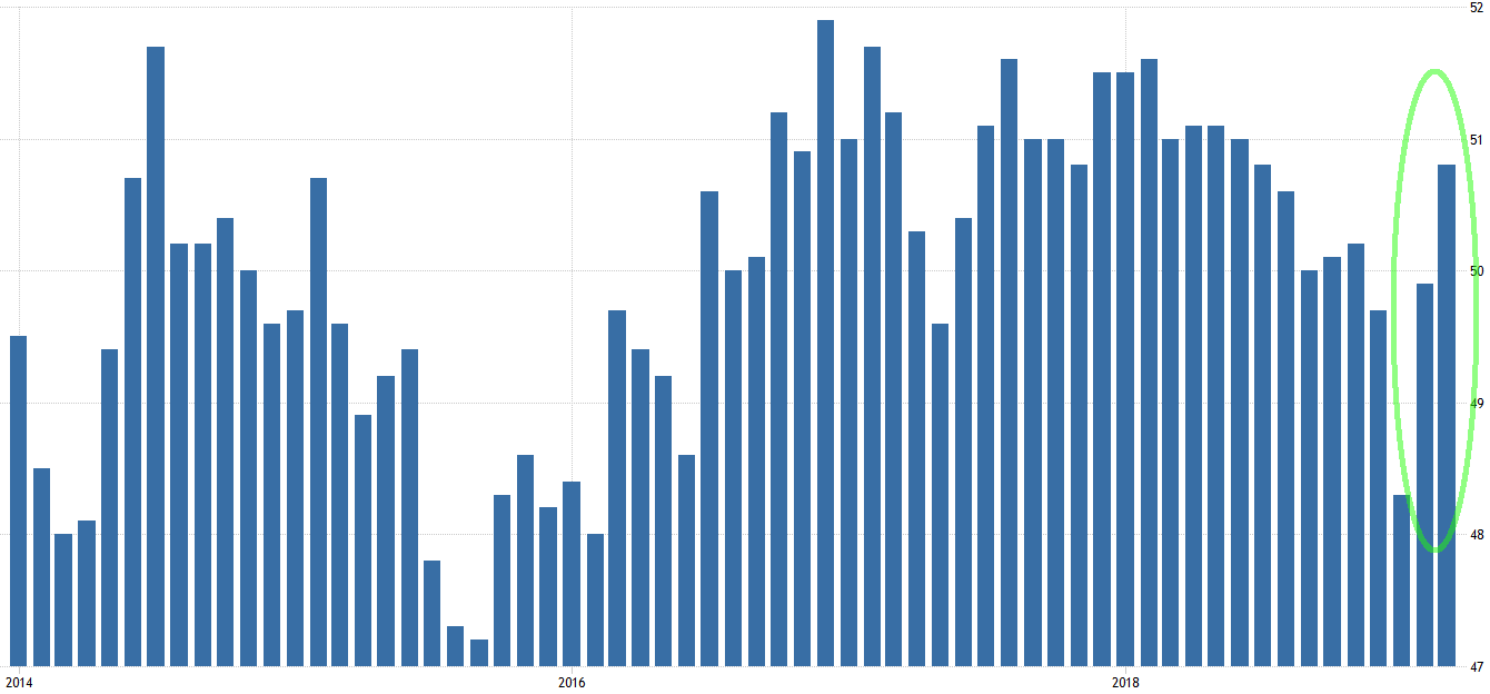 そして月曜夜に発表された米国製造業ISMも、先行指標のフィリーや連動性が高い中国PMIと一致する形で改善を見せた。ここまではちゃんと予習をしていればノーサプライズであったはずだ。
