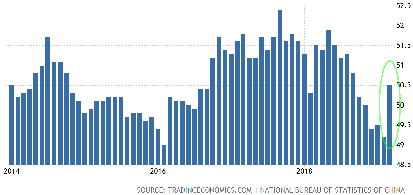 週末に反発を見せた中国の公式製造業がPMIは政府発表なので信用ならない、と考えていた市場参加者の希望は1日で打ち砕かれた。財新製造業PMIも2ヶ月連続の改善を見せたのである。本ブログなどは石炭消費量やショベルカー売上まで引っ張り出したので財新PMIが堅調なのは当たり前だったが、改めて反応を強いられた参加者もいただろう。もしかしたら本日発表の財新サービス業PMIを待ってコンポジットPMIを確認して初めて動ける参加者もいたかもしれない。そのスピード感は株では許されないだろうから、いるとすれば債券投資家である。