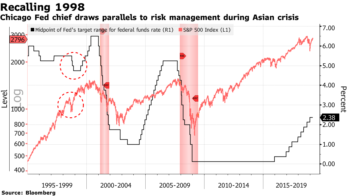 シカゴ連銀総裁:今年の金融政策、1998年の利下げから学ぶ必要 -Bloomberg