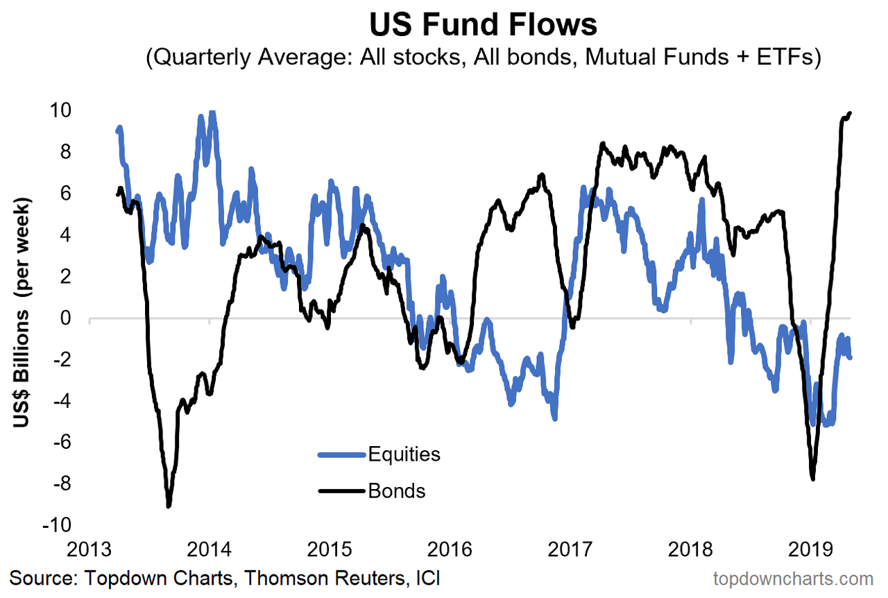 景況感をクオンタメンタルに分析した結果かわからないが、1-3月期の米株の戻り局面ではいわゆる投信・ETFは(つまりその裏にあるアセットアロケーターは)株を淡々と売り続けた。リスクパリティファンドも年末の底で振り落とされていたことだろう。では代わりに誰が買い上げたのかというとCTAと企業自身の自社株買いと思われる。そしていい加減指数が戻りきったところでクオンタメンタルかリスクパリティか知らないがアセットアロケーターが買い戻し始めたようだ。代わりに持っていた国債もゴルディロックで調子が良かったので気持ちにも余裕があるのだろう。特に4月の米株の下がらなさは異常だった。