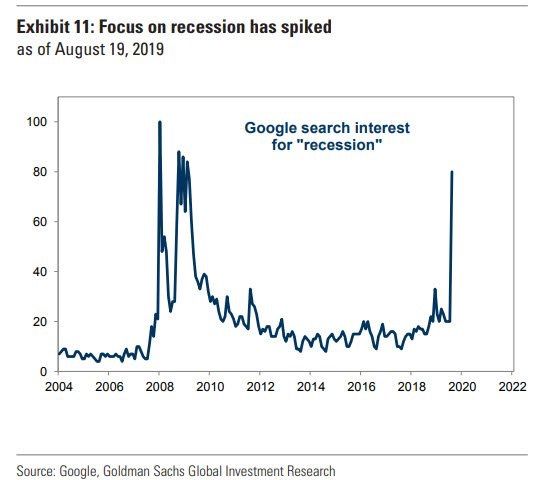 BoAMLによると、明らかに逆イールドを受けて「Recession」のGoogle検索件数が急騰しておりリーマンショック以来の高さとなっている。インバートがこれから消費者や経営者のセンチメントに影を落とすこともあるだろう。
