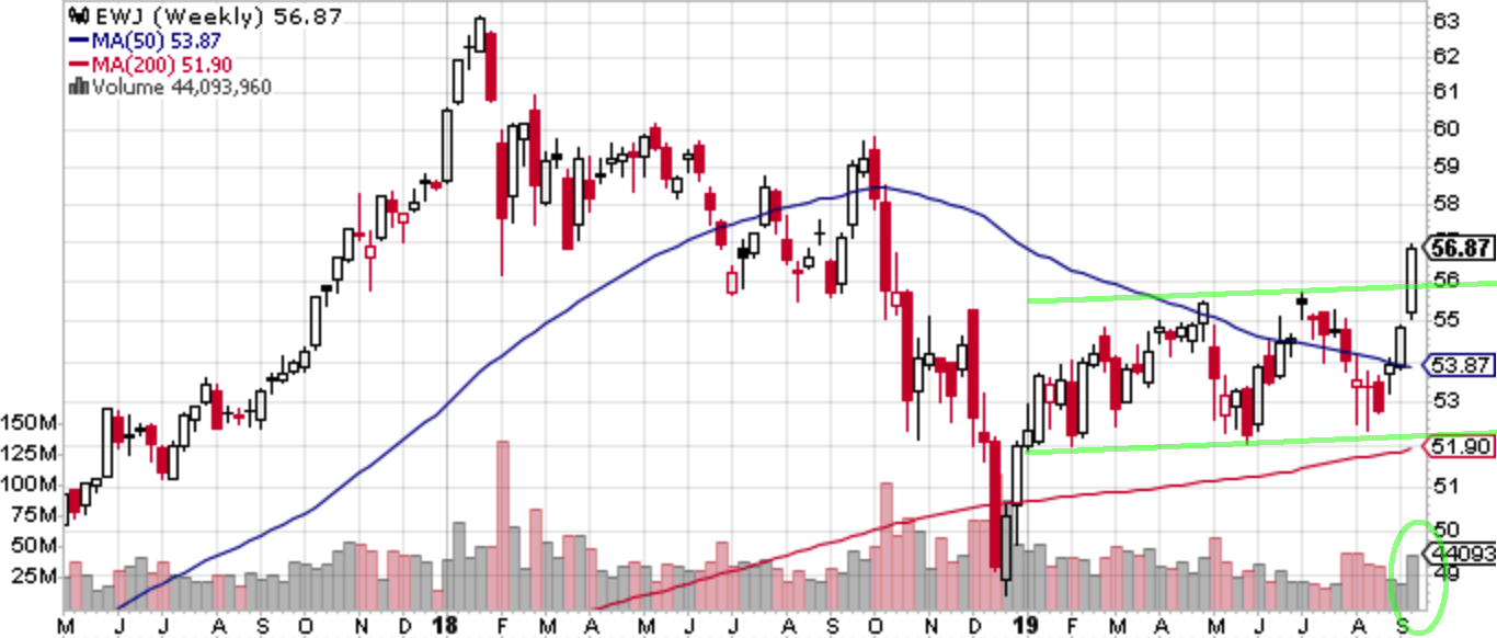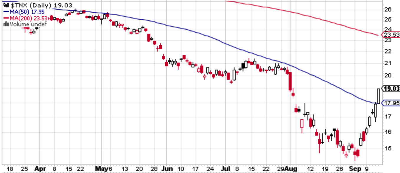 ファンダメンタルズ的には良いニュースばかりだった。「9月いっぱいはあまりネガティブなヘッドラインを警戒しなくても良さそう」としていた通り、貿易戦争において米中双方は急速に先送り方向に歩み寄りを見せている。強硬派のボルトンが首になった。それでも妥結するわけがないという参加者は長い苦しい忍耐を要求されそうだ。ECBは10bpの利下げと共にオープンエンドQEとTLTROの条件緩和、また利下げの副作用を緩和するために階層構造を導入(これが実効政策金利の引上げに繋がったという声もあり、週後半の金利上昇加速に寄与した)という満額回答を打ち出した。