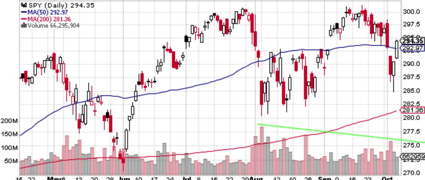 S&P 500連動ETF「SPY」の出来高を見ると、投げ尽くしたほどの大相場ではないものの、それなりに投げが出て出来高は膨らんだ。もっともその後再び買い上げられてしまったから投げ以上の買いが入ったことになる。