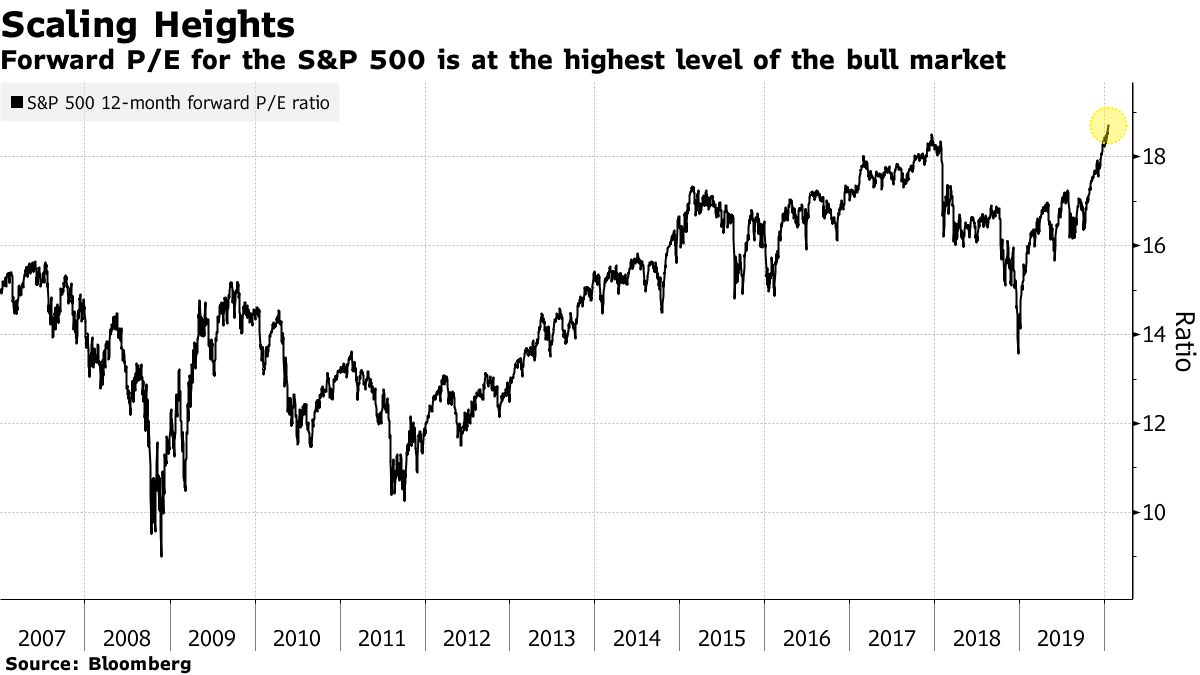 バリュエーション的には当然高い。年初の記事では「2017年年末の手前までフォワードPERは上昇している。Fedのスタンスの当時との違いを考えると超えてもおかしくはないが、長い目で上値余地があるとしても腰を据えて長期投資するような割安さではなくなっていることは間違いない」としていたが、実際に安定した低金利を手掛かりにフォワードPERは2017年年末の水準を超えた。長い目どころか短い目で見ても上値余地があった訳だ。