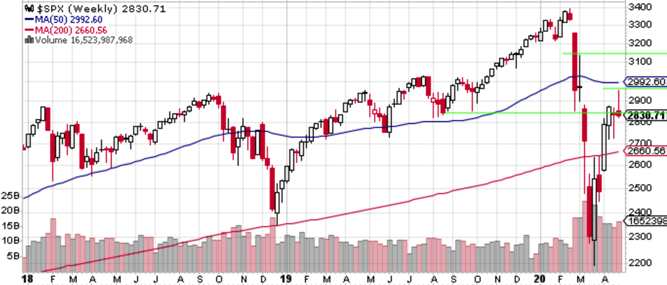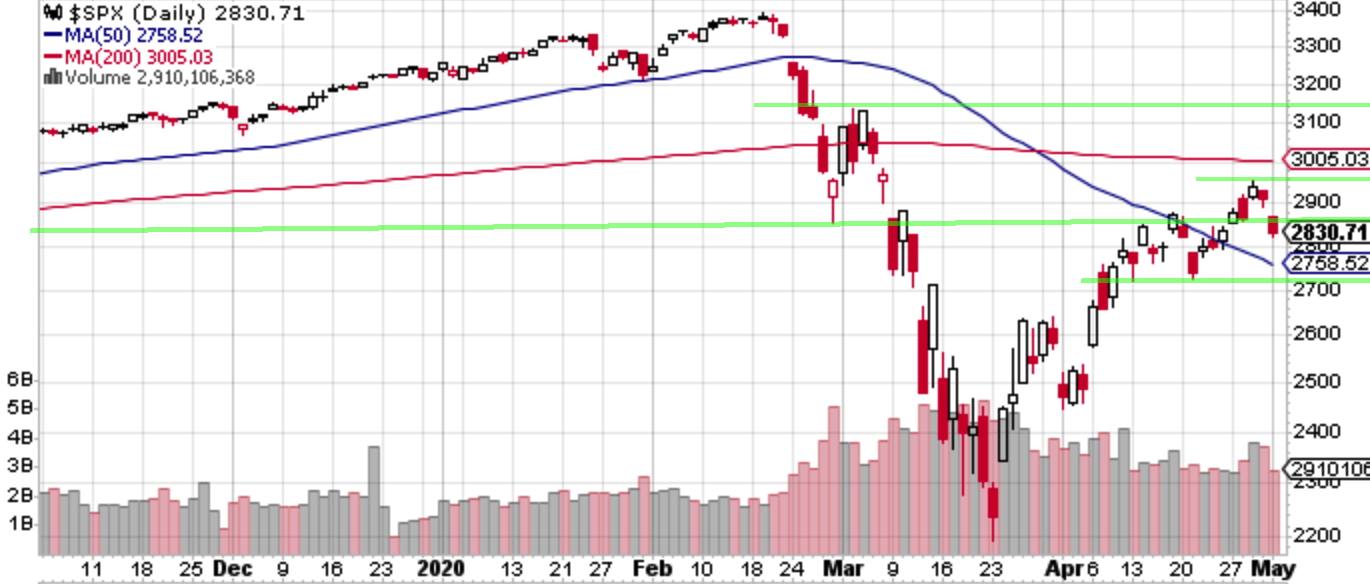 ファンダメンタルズ的には経済再開への期待と一部企業の決算通過で一時高値を伸ばした。山はすぎたらしいものの、感染拡大が終わらないうちに自棄っぱちで経済を再開したらどうなるか、中国も未経験なのでカンニングできる前例はない。週後半にかけては米中関係にきな臭さが再び漂い始めた。奇しくも昨年の5月も同じような構図でセルインメイに突入している。歴史は繰り返すのか。