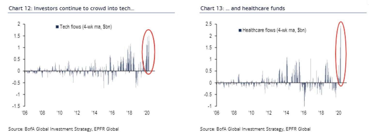2月末ほどは露骨に弱く見えないものの、ラリーを先導した大型テックはMSFTは前回高値を前に足踏み、AMZNは期待で高値更新したものの決算後はパッとしない。経済再開期待でとりあえず雷が落ちなそうなナスダックに突撃したものの、ここまで来た後の展望は描きづらいという図に見える。