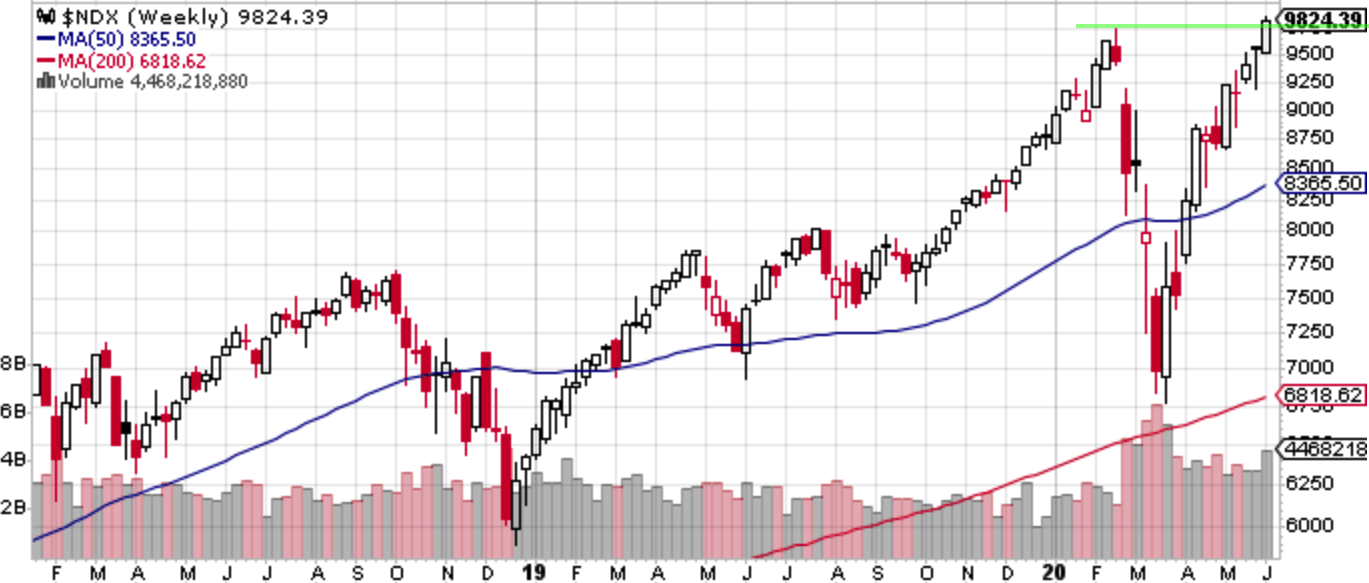 テクニカルには3140ブレイクにより春の大きなヘッドアンドショルダーの右肩がブレイクされヘッドアンドショルダーの効力が解消された。もっともこれは2200の安値更新より先に3400の高値を付けそう、ということでしかないので、短期的な一直線上げの継続を保証するものではない。ただショートを張るのに使えるバックストップが消滅したのは事実である(3140も一瞬でワープしてしまったので残念ながらバックストップとして機能しなかった。これは大反省である)。ナスダック100は過去最高値更新で「新高値に売りなし」に突入する。