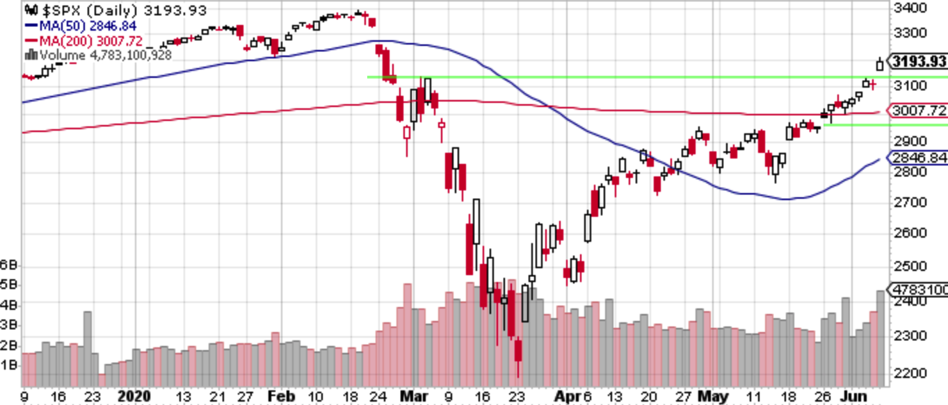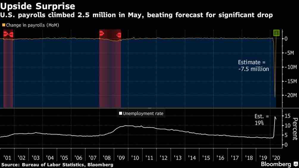 ファンダメンタルズ的には依然「本ブログも含めて懸念されていた香港国家安全法への米国の対抗案が不発に終わってしまった。昨年の貿易戦争の時のようにトランプの鶴の一声で朝起きたら大クラッシュ、を期待する参加者には辛い時間帯担っている」。米国はひたすらに経済再開に向かって突っ走っている。金曜に発表された雇用者数は予想外の250万人増のサプライズとなった。集計ミスがあったのではないかとも言われたし、実際週末には集計ミスがあったと発表されたものの、結局少なくとも金曜については「解釈に迷う人が残っている間こそ上がる」展開となった。