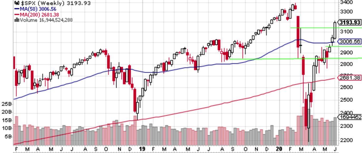 先週のS&P 500は壮大なショートカバーとなった。過去の記事で「中長期的な売り場」としていた2950 -3140ゾーンはほぼノンストップで一気通貫されてしまった。過去の値動きからしたらそこまで大きく大きくないものの、結果的にこのゾーンは今回の相場で最も安心感を持ってロングで突っ走れる局面であったにもかかわらず「中長期的な売り場」としてこだわってしまったのは完全にセンスがなかった。「2970 -3140」レンジの上半分〜上方での推移となった。