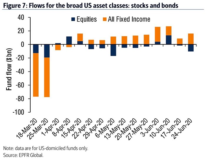 ポジショニング。「ファンダメンタルズベア勢のショートカバーは一巡したが株ポジションの重い参加者も少ない」という全体像は一朝一夕では変わり得ないだろう。米国株ファンドへの資金流入は6/10の週で一巡しており、ショートカバーが見事に雇用統計アイランドで決まったことを示唆している。滑稽であるがそれがファンダメンタルズ投資の現実である。