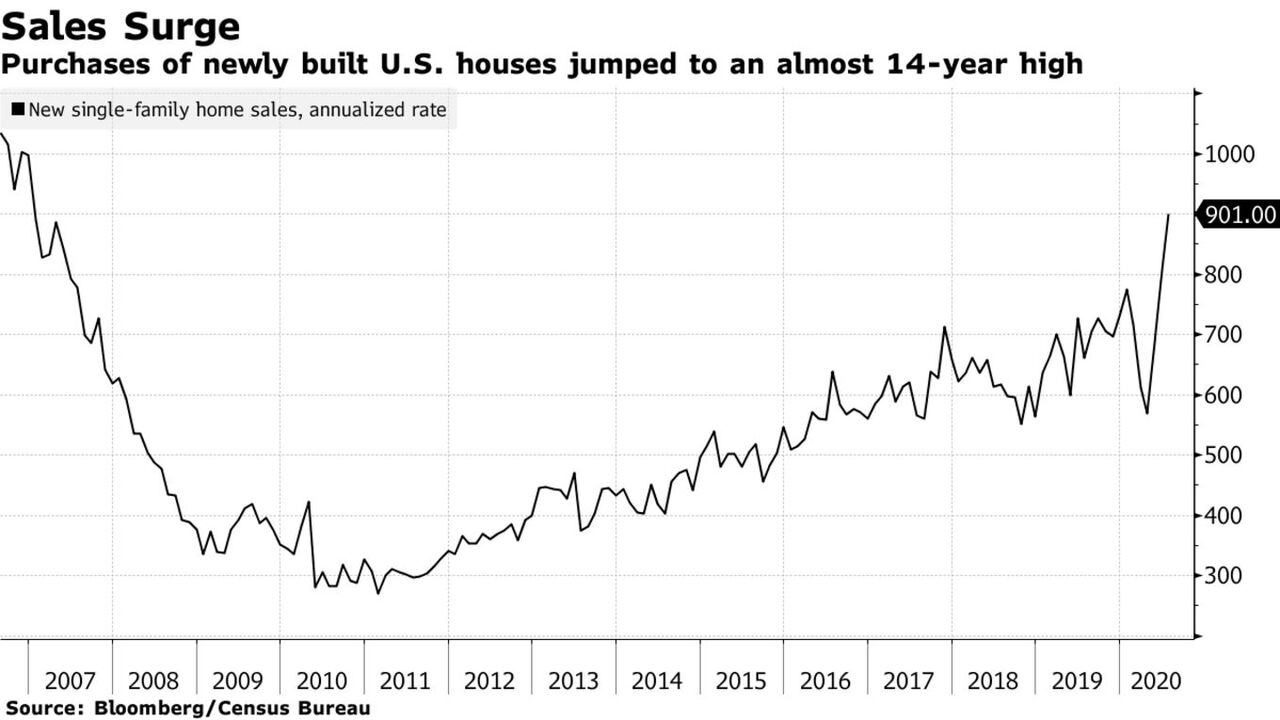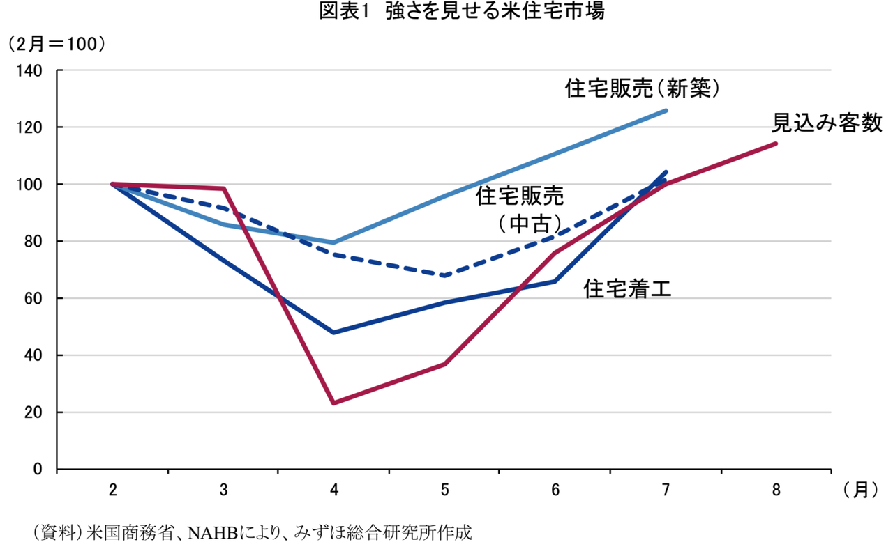 もっとも賃料は下落したが、米国住宅市場そのものが傾いているわけではない。住宅販売件数は新築、中古ともにV字以上の回復を見せている。郊外化についてみずほ総研は以下のように述べている。「ベージュブックでは、ボストン連銀、ニューヨーク連銀、フィラデルフィア連銀、リッチモンド連銀、 シカゴ連銀、サンフランシスコ連銀等がこうした動きを報告している。一部の地域では、住宅市場の過熱感を伺わせる報告がみられるほどだ。クリーブランド連銀は「低金利と住宅在庫のひっ迫が、住宅購入者に危機感を植え付け、住宅販売に拍車をかけた」と報告している。またリッチモンド連銀は、「客足が増加しており、顧客は真剣に購入を考えるようになった。多くの家が現物を見ずに購入されており、一部は数時間で売られたものもある」と報告している」。
