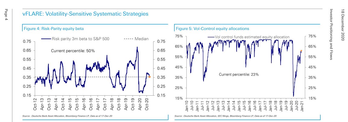 ポジショニング。12/21に出回った12/15付のものでやや時間が経っているがDBのまとめでは裁量投資家は既に2018年以来のポジションを積み上げており、一方システマティック系投資家は下で派手に切らされたのとVIXがなかなか下がってこないので平常時まで復元できていない。