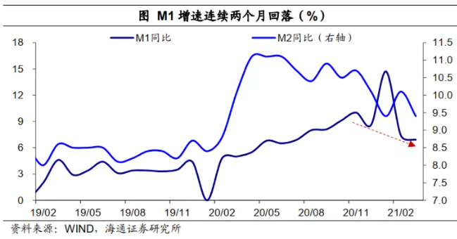 一方、これはクレジットインパルスのピークアウトを否定するものではない。貸してもらったにもかかわらず、企業の手元資金の代理変数であるM1の伸び率も春節ノイズの1月(ベース効果とM2との交換)を除くと昨年11月をピークに減少に転じている。春節ノイズ以外にM1には特にベース効果がなく、昨年中緩やかに伸び率が加速していたM1はやはり昨年秋をピークに緩やかな減速を示している。