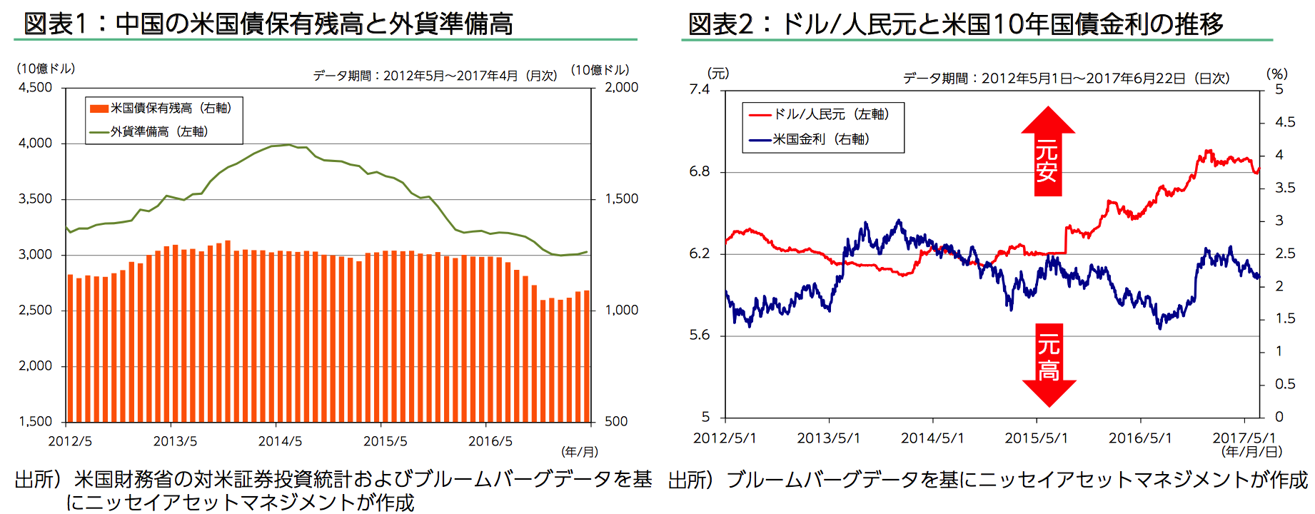 我々は、中国が資金流出に苦しんでおり、外貨準備高を減らしながら(米国債を取り崩しながら)ドル売り人民元買い介入を続けているというイメージを長らく持ち続けてきた。今年年初から外貨準備高が3兆ドルをぎりぎり割らないところで反転したのを見ても、どうせ公式発表は3兆ドルを割らないように粉飾しているのだろうと考えてきた。ところがここに来て、米国財務省発表(!)の対米証券投資統計によると中国の米国債購入は実際に2017年に入ってから再び純増に転じている。中国当局には人民元売り・ドルの買い戻しを行えるほどの余裕が出て来たようである。