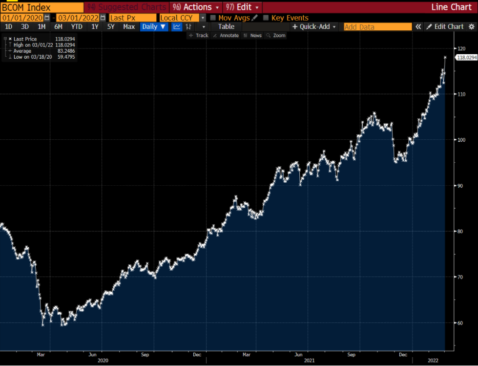 しかし、2月後半になってからのロシア・ウクライナ全面戦争の勃発に伴い、実質金利は再び▲80bp割れまで急低下した。戦争は物資の消費活動であり貿易の阻害要因なのでインフレ期待を加速させる要因であり、一方で安全資産への逃避で反射的に資産を配置する需要も出て来る。様々な要因が絡まりどれが勝つかは名目金利については直ちに結論が出づらいものの、実質金利は戦争では深く考えるまでもなく低下するに決まっている。更に根拠のない議論を進めると、平和な時代ではインフレは庶民にとって最も避けるべき苦しいものであり、従って政治的にも引締める必要があるが、戦争下では政治の雰囲気も高揚しやすく多少のインフレで音を上げづらくなる。