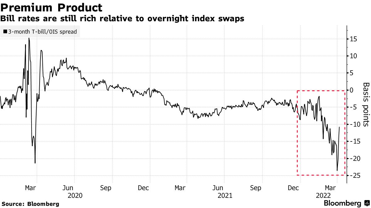 マッシブ・ホーキッシュであった3月FOMCの議事要旨が4/6に発表された。3月末までは早期利上げ織込みの進行に伴い2-10など主要なカーブスプレッドのインバート(逆転)が話題になっていたものの、議事録が発表された後はスティープニングが加速し、インバートはあっさり解消されている。一方、インバート=リセッション懸念だったならばインバート解消はリセッション懸念の解消を意味するはずであるがそのような展開にもなっていない。これは命題が怪しいから当然でもあるが、スティープニングはQT2の現実化でタームプレミアムが上昇した結果という見方が分かりやすいだろう。つまり3月FOMC及び議事要旨では一層の利上げ早期化よりもQT2の方が比重が大きかったということである。