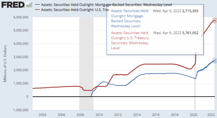 というわけでMBSの減り方は遅いようなので、QT2が佳境に入った後のMBSのアウトライト・セールは当然考慮される。ここまでは前回の記事で「(アウトライト・セールを提起する)ジョージ総裁の味方は明らかにメスター総裁、ウィリアムズ総裁含め多数存在」としていた通り1月FOMCでも大勢が決まっていたことであり、2月以降に金利が上がったのを受けて何か構造的な変更が見られたわけではない。しかしFedが4/6時点で保有する米国債が約5.8trn、MBSが約2.7trnであることを考えると、国債が毎月60bn満額減るならMBSは毎月30bn弱くらいは減らないとむしろMBSの方が濃縮されることになり、何度も提起されてきた「将来的にポートフォリオを米国債中心にしたい」という目標から(微弱にではあるものの)遠ざかることになる。従ってべき論としては国債とのバランスを考えるとMBS市中売却はそこまで遠い将来の話ではないように思える。金利が更に上昇して更にプリペイメントが減速したら尚更である(従って一層の金利上昇はMBS市中売却プロセスを早めるという巨大なコンベクシティを思い描くこともできる)。本ブログもまたQT1のようにMBS売却に辿り着けないままQT2も終わるのではないかなどと舐め腐っていたが、実は来年あたりに現実化してもおかしくはない。もちろんMBSの市中売却が決まる時には前もってアナウンスされる。