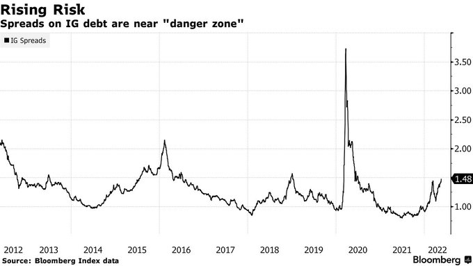 クレジットスプレッドは株価よりも動きが遅いが、一旦動き出すと本丸感が出る。つまり「ただの株のバリュエーションの上げ下げの範疇に収まらない、企業の資金調達コストが大幅上昇が始まった」という解釈である。株式と比べて債券・金利市場の方が、FCIやFedのセンチメントに与える影響が大きい。もっとも「USIG 150bpがS&P 500の20%ドローダウンに相当」と本ブログが繰り返してきたように、これらの指標は根底では繋がっており、Fedが株価だけを見ているわけではないからと言って、それがリスクオフに動じないという結論に繋がるわけではない。