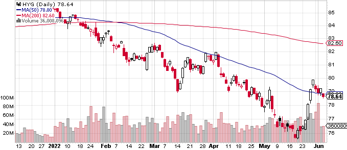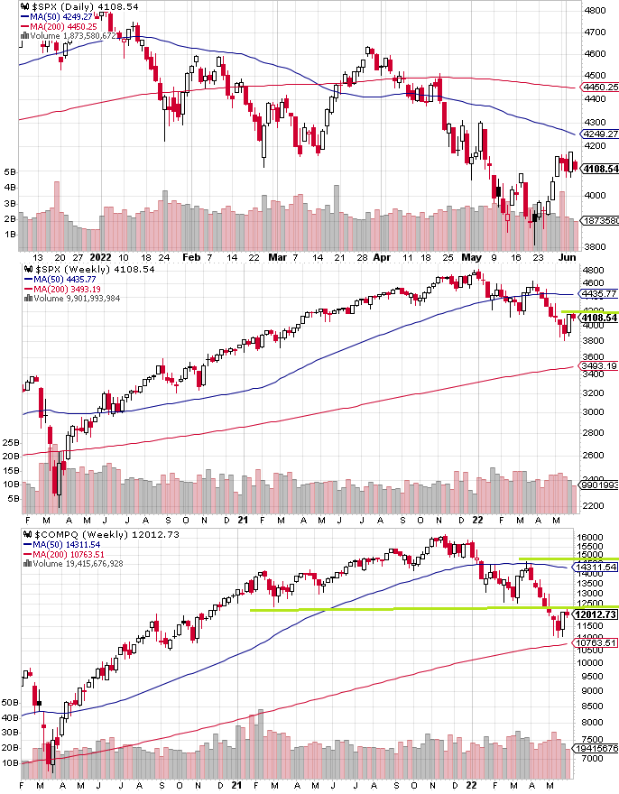 先週のS&P 500は反発後の高値圏で膠着となった。週明けはさすがにやれやれ売りが優勢、木曜はMSFTの米ドル高に伴う業績予想の下方修正で下を掘ったところを踏み上げる動きとなり大陽線となったが、金曜にはよい雇用統計に伴う金利上昇で木曜を更に否定する形となった。ただ少し前に見られたような、引けまで一直線の売りとはさすがにならず、週足は小陰線となった。先週の記事で述べた「過剰なレバレッジを掛けていた参加者にとっては現水準より上で推移している間はレバレッジ解消の機会となる」「6月後半のブラックアウト入りまでにどこまで上値で売れるか」「LQD/HYGが再び崩れて来ない限りショートは様子見」はいずれも今週になっても訂正の必要を感じない。