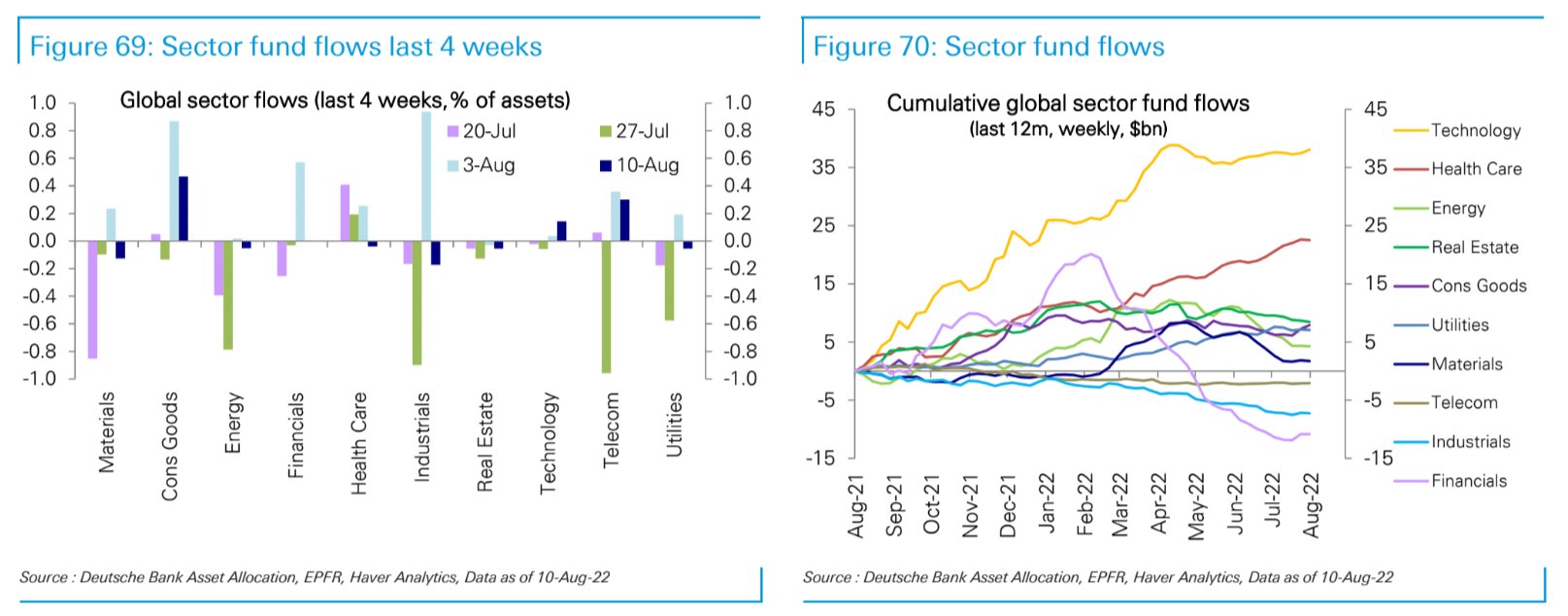 セクターフローはBofAもDBもヘルスケアから流出、テックに流入とやや強気であった。