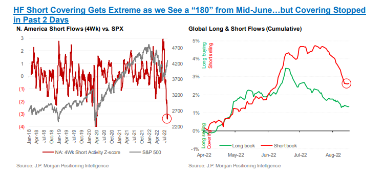 Volコントロールの復元に伴いDB Positioningは15%パーセンタイルまで回復している。過去対比でまだ低いものの、2015年パターンになる可能性も残る。この時もチャイナショックで作られたショートが掃けないまま2015年年末にかけて指数が大幅に戻りショートカバーを迫られたが、結局ファンダメンタルズ的には売りで正しかったので2016年年初にかけて売り直された。