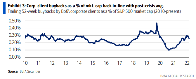 週末に議会を通過したInflation Reduction Actは自社株買いに1%の課税を定めた。増税はS&P 500の2023年EPSに▲2%、自社株買いへの1%課税はEPSに▲0.5%のインパクト、とGSは予想する。一方で駆け込みの自社株買いを見込む声もあり、とりあえずDay1には目立った反応はなかった。いずれにしろ、今年に入ってからは自社株買いは計画の大きさの割りにはあまり進んでいない。