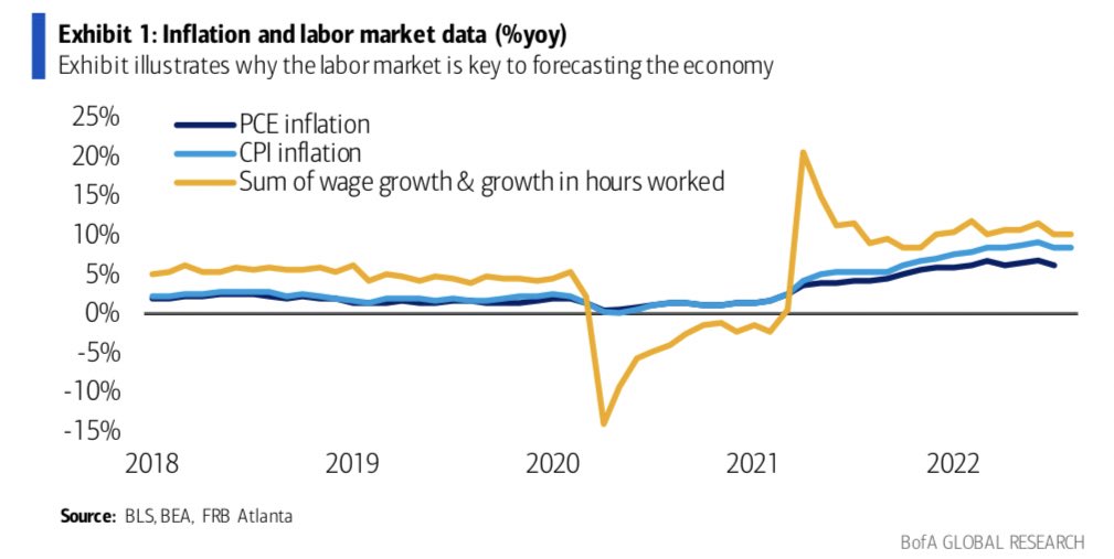 供給制約やエネルギー価格主導のインフレと比べてコアインフレの方が粘着的に決まっている。前者の価格上昇が一過性で毎年同じ年率だけ上がる仕組みがないのに対して、コアインフレは毎年増える賃金によって支えられるからである。これを見るとリセッションどころかソフトランディングですらなく、金融引締めで環境が変わらない限りセーフランディングになってしまう。