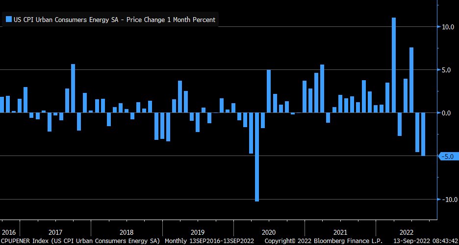 これまでのCPIで最も悪さしていたエネルギーは一転して前月比▲5%と深いマイナスが続く。