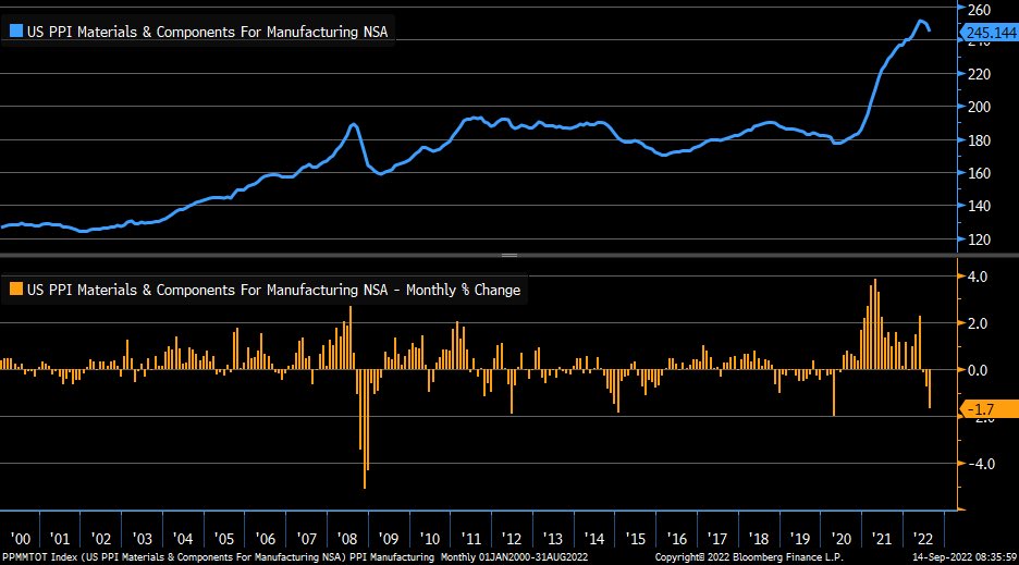 前月比で見るとコアが+0.6%も伸びたため(ベース効果がある前年比と違って)ピークアウトの兆しすらないのが分かる。ヘッドラインの方はエネルギーがマイナス方向に作用しているため+0.1%となっている。