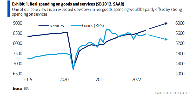 コアの中ではコア・グッズは本ブログが夏に取り上げていた供給制約の大幅な緩和などを受けて急速に低下している。消費財の方についてはiphone 14すら値上げしなかったので完全に値上げが止まったと見るべきであり、コア・グッズは速やかに前年比0%に向かうだろう。一方コア・サービスはむしろこれからと言わんばかりの勢いで上昇している。これは「米国消費者の過剰貯蓄は大半が健在」で取り上げていた、消費のグッズからサービスへのシフトの流れに伴うものである。
