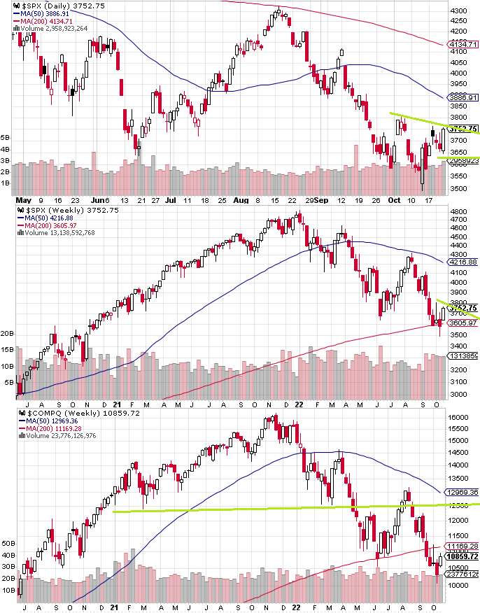 先週のS&P 500は堅調地合いとなった。決算としてはテスラが滑ったが指数にはあまり影響がなく、またSNAPが毎回ながら決算で滑って広告業界を引き連れて急落したものの、前回それがGAFAM決算跨ぎチャンスを提供してくれていたのだが、こちらのインパクトも1日で終わった。本ブログはCPIで跳ねた後で再び垂れて引けた指数について「基本的に3500 -3700のレンジ継続を想定しているが、このレンジ内での滞空時間が伸びてリアライズドVolが下がってくれば来週以降はシーズナリティを借りて上昇しやすくなるだろう」としていたが、少し前の3585 -3735レンジに続いてまたしても想定よりも3700台をやっており、3700は指数の蓋にならなかった。日々の値動きは想定より大きく、必ずしも「リアライズドVolが下がってくれ」たわけではないものの、水準としては3700を挟んだ推移が続いた。とはいえ木曜までの日足では3700後半の重さが際立っており首の皮一枚にも見えたが、金曜にはNickがまたブラックアウト前に12月のFed Pivot観測を放り込んで来たため、場中は日銀の為替介入に隠れてよく見えなかったが日足の転換点になったようにも見える。