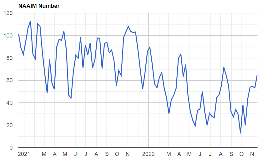 NAAIMは更に強気になっており、すっかり総悲観でなくなっている。こちらは依然高値追いを正当化しない。