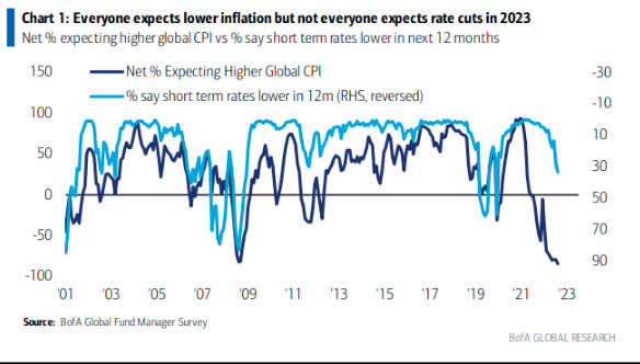 投資家はずっと揺るぎなくCPIのピークアウトを信じてきたが、その後短期金利が12ヶ月以内に低下する期待も剥落してきた。その組合せは実質金利上昇とデフレ転落を意味するのでポジショニングの説明になる。