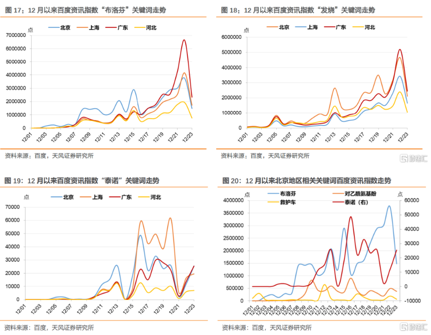 使えなくなった公式データとは別に、サーチエンジン「百度」の問診の検索数などは12/21あたりを天井にピークアウトしている。こんなにピークアウトが早くやって来るものなのか、と思うものの、解熱剤の検索数もピークアウトしている。もちろんピークが来ていないものがあり、それは遅行する死亡者数であり、死亡のピークは来年年初になりそうである。1ヶ月後になる旧正月には再び民族大移動が控えている。それまでに一旦ピークをやりすごすためにわざと素早く拡散させようとしているとの説もあるが、ピークがすぎたところでウィルスが消えるわけではないので意味がない。素早い拡散は医療インフラにマッシブなストレスをかける。そもそもピークをコントロールするつもりならリオープンの時期としては冬が最も不利ではないか。いずれにしろ、1月以降に医療インフラが更に脆弱な農村部に持ち込まれるのは避けられない。とはいえ、デルタ株の時の米国もそうだが、金融市場に影響を与えるのはあくまでもロックダウンそのものであり、死人が出ること自体は材料にならない。さすがにゼロコロナ政策の再開は無理だろう。管理する方も従う方も気力が持たない。