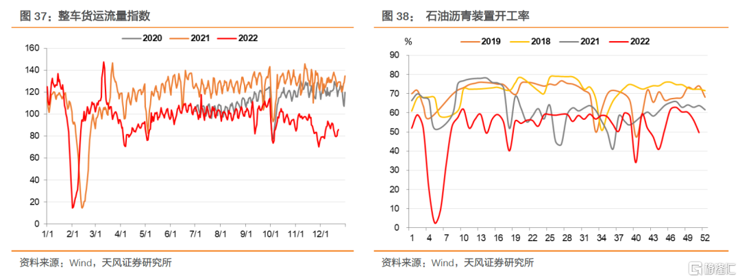 トラック運送量(左)も低迷が続いているが、2020~2021年のトレンドから下方に乖離したのは今更ではないので、サプライチェーンの再混乱もさることながら、そもそも景気や輸出連動で運ぶ貨物が減っている可能性が高い。
