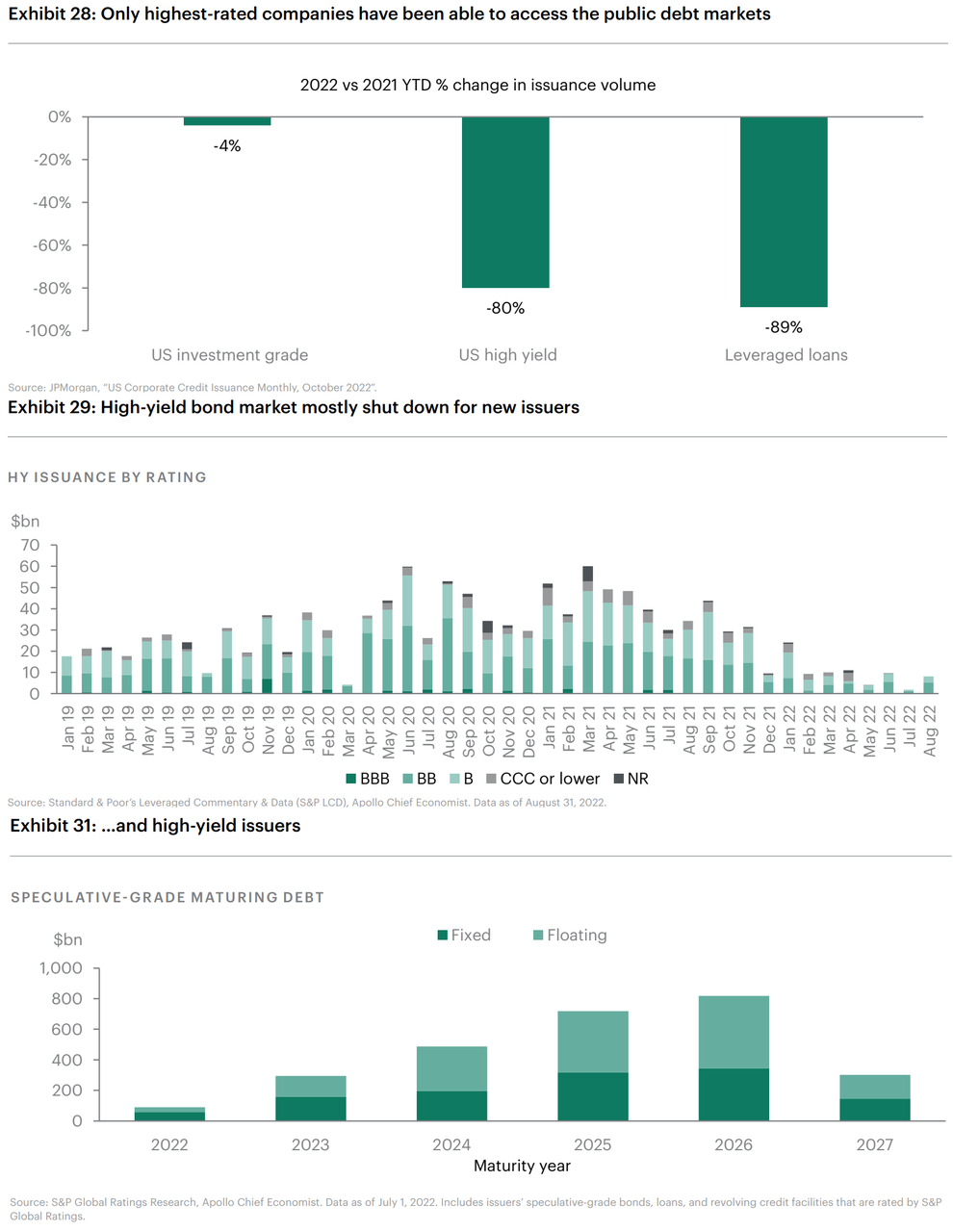 これまであまり触れられて来なかったが、高金利を受けてハイイールド債の発行は大半が止まっている。これが3つ目のチャネルである。幸い低金利時代に企業は既にBSを強化しているため(この話は冒頭の黒岩のところでも出てきた)、大半の発行体は発行ウィンドウが閉まっても乗り切れる。償還ウォールは(低金利時代に長い調達を行えたため)集中していない。