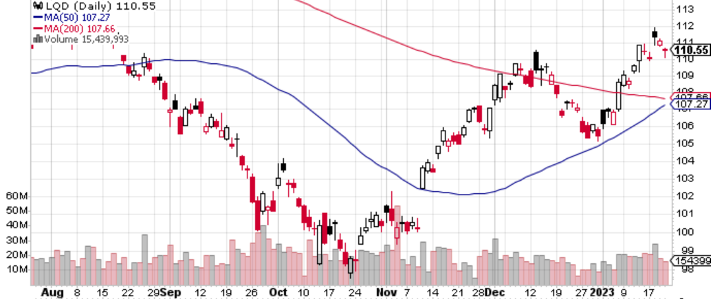 LQDはすっかり強気なチャートになっており、これを見ていると株が債券対比でも相対的にバリュエーションが高いとはいえ、ショートできるような雰囲気ではない。