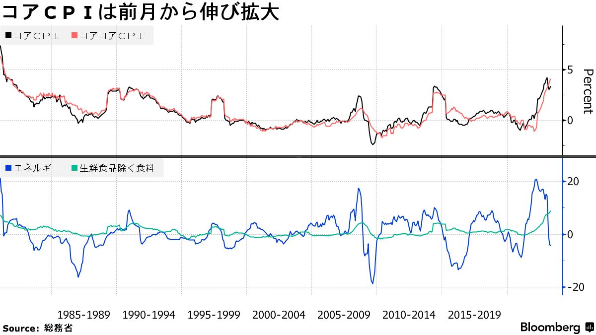 その後の取材を含めて植田総裁の答弁は前任者ほどは一貫しておらず、解読する者を困惑させがちである。その中でも間違いないのは、かつて黒田総裁がFed pivotを待ちながらteam pivotの理論的支柱を記者会見でぶち上げたように、植田総裁もまたFed pivotを待ちながらteam pivotの世界観に従って議論していたことである。team pivotはインフレの数字は前年比であるため一時的な(transitory)高騰の翌年には反動低下がやってくる仕組みに注目してきた。黒田総裁は「2024年以降には戻るかもしれないが、とにかく2023年は輸入物価のベース効果で一時的にCPIの前年比が急低下する」を緩和継続の根拠としていたが、植田総裁は更に「2023年は一時的にCPIの前年比が"はっきりと"急低下するし、その後でさえ2%に戻るとも確信できない」と述べている。直近で前年比3.4%のコアCPIを横目に、ベース効果による一時的な前年比2%割れの後、再び2%に戻るかどうか、この目で見てみないと分からないというのである。これではベース効果でコアCPIの前年比の数字が一時的に下がった間は「一時的とは確信できないため」金融引締めが来そうにない。他の場でもこの考え方は繰り返された。確かにこれでは金融緩和縮小まで丸1年以上かかりそうな気しかしない。藪から棒に「賃金の上昇を伴う形で2%」と政策目標に入ってきた賃金も同様である。今回の春闘の次を確認できるのは来年の春闘であり、それは丸1年後である。