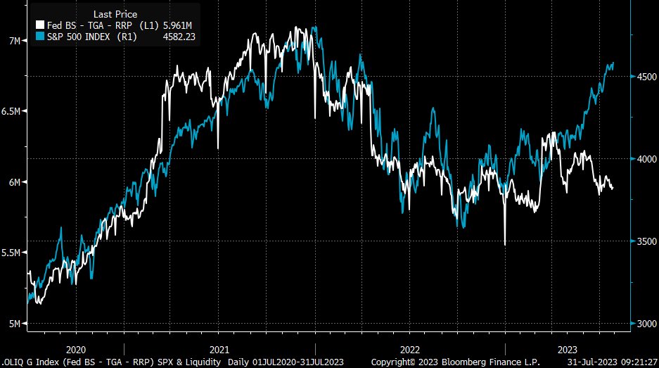流動性(QT再開)対比でS&P 500が自力で伸びてきたのはこれまで述べてきた通りである。