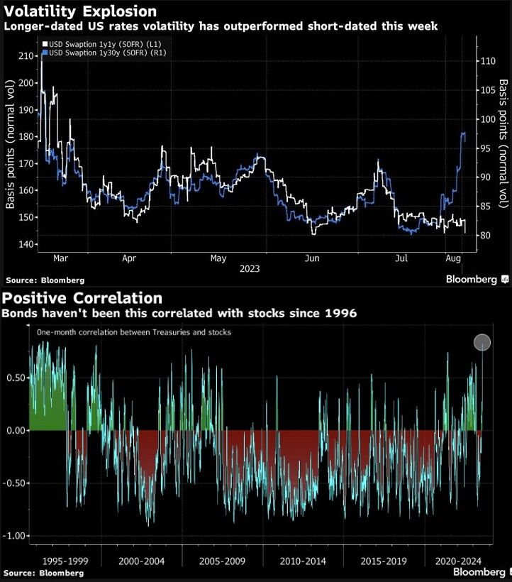 Fedの金融政策は今更変わらないので、金利のスティープニングと共に長期金利のボラティリティが選択的に上昇した。今度こそ債券による株式のヘッジ機能が喪われるとも盛り上がったが、金曜の株安にはがっつり金利低下が伴っており、一方で金利低下もゴルディロックス的な株式のラリーに繋がらなかった。