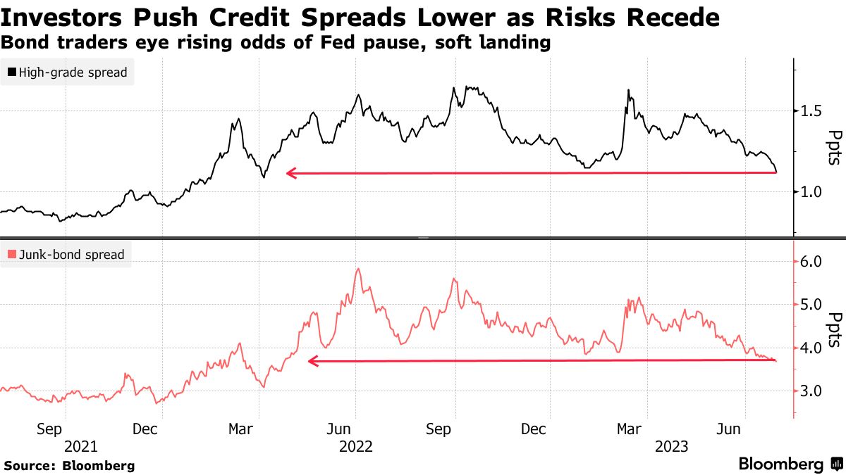 クレジットは依然静かであり、フィッチの米国格下げが他のクレジットに広がる様相が全くない。従って債券市場全体に何かが波及したフィッチ・ショックというものは存在せず、株式の調整はあっても現状伸びきっているバリュエーションの調整の範疇にとどまるだろう。従って下値を叩くほどではないと判断される。