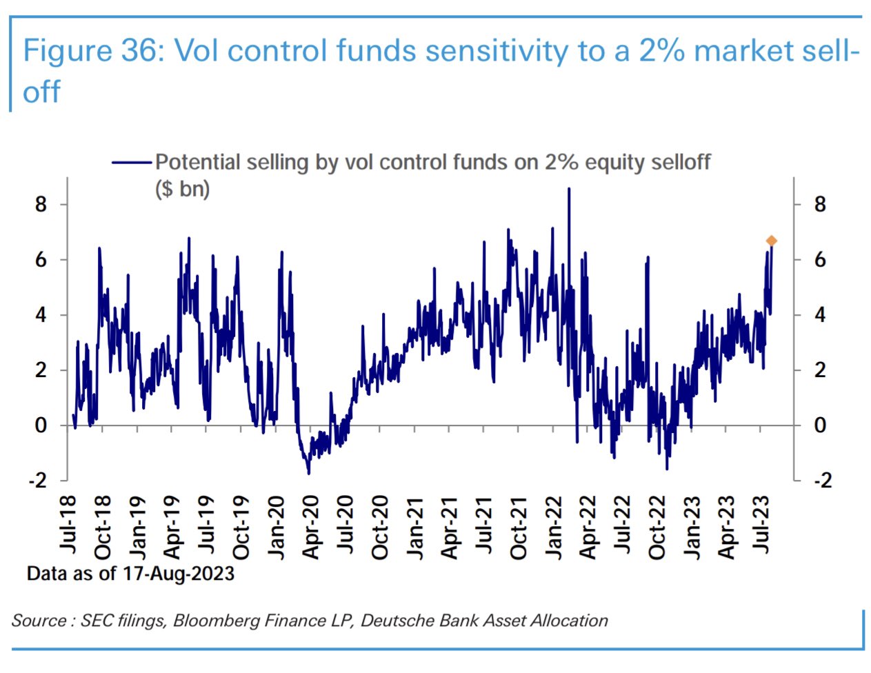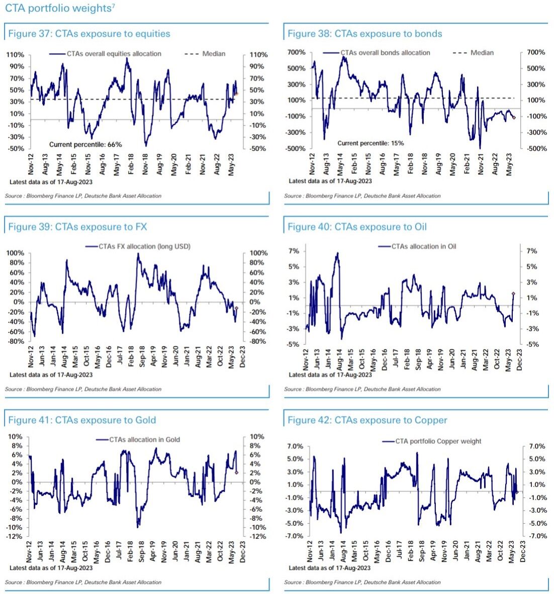 DB PositioningでもCTAの株式エクスポージャーは高値圏から少し転換した形になっている。