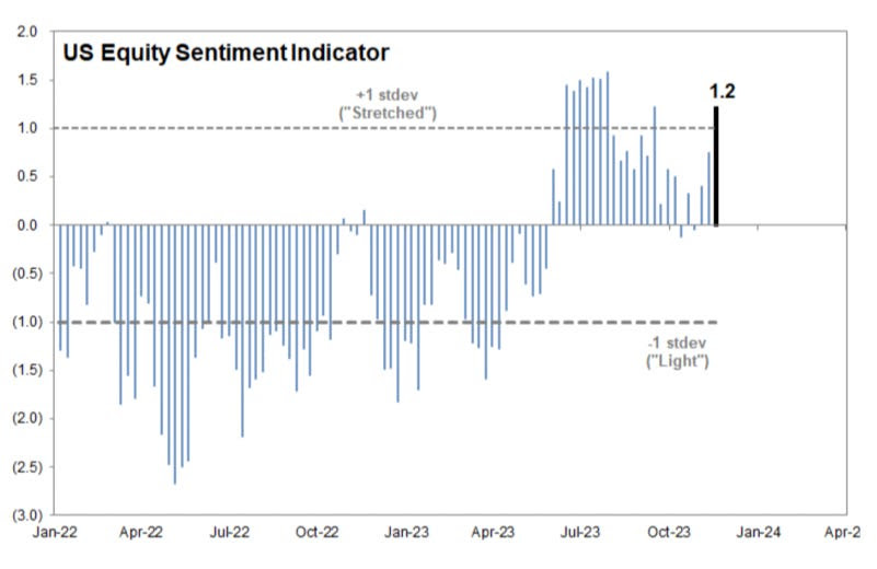 NAAIMは再びそれなりの楽観まで来ているが、まだ総楽観というわけではない。GSのセンチメント・インディケーターはいいところまで楽観化している。