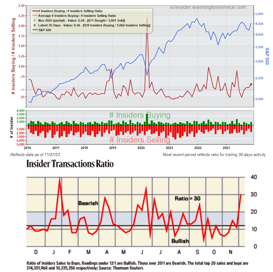 先週の記事でも創業者による株式売却を取り上げたが、インサイダーはネット売りに傾いている。機械と自社株買いが買って幹部が売っている、という構図になる。