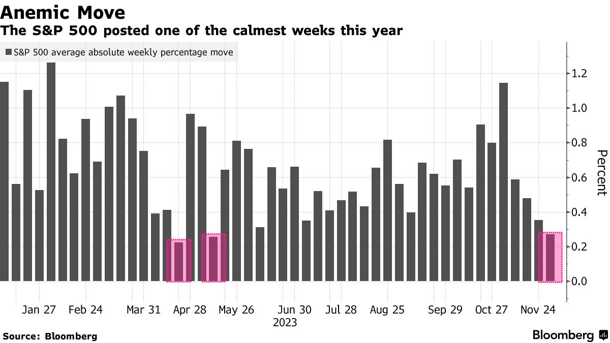 週間では4月以来の小さな値動きとなった。