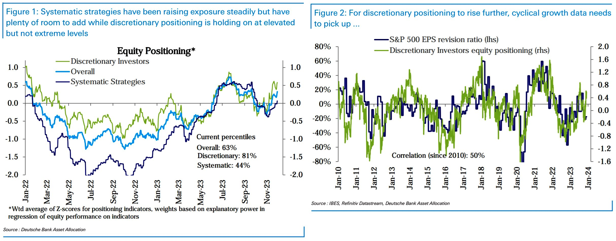 DBのポジショニングがようやく流れてきた。Volコントロールは少なくとも先々週末の時点ではフルロードになっておらず、高値追いはVolコントロールの残り少しの復元余地を追いかけることになる。