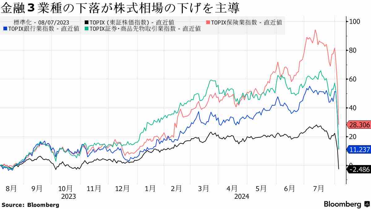 前回の記事は結論の決め打ちはできなかったが、事前のコンセンサスからはそうそう外れていないと思われるため、現実のアナウンスと見比べればどこがサプライズだったのかが整理でき、それを行ってようやく7/31以降のパニックの全容を掴むことができる。運が悪かったことに、8/2に米国の失業統計がサームルールをトリガーしたことで一気に景気後退懸念と共にFedのビハインド・ザ・カーブ懸念(つまり7月に利下げしておくべきだった、9月は遅すぎる)が噴出し、米国市場は激しい金利低下とリスクオフに見舞われた。ついでにこれは久々の「引締めすぎ」のリスクオフではなく景気後退懸念のリスクオフであったことからドル安円高を伴うことになり、雇用統計後の週明けに寄り付いた日本株にも景気後退懸念の売りが降りかかった。パンデミック後にグローバル投資家が中国株や香港株から資金抜いて日本株に配分したとも言われているが、それだけにアジア時間のマクロヘッジ需要はこれまで以上に日本株に集中した。それに対して流動性を提供してきた逆張り好きの日本の個人投資家が日銀の利上げで一瞬手を引いたことで需給が大きく崩れたことが、日経平均が1日10%以上も下落した日本版ブラックマンデーを演じた背景である。